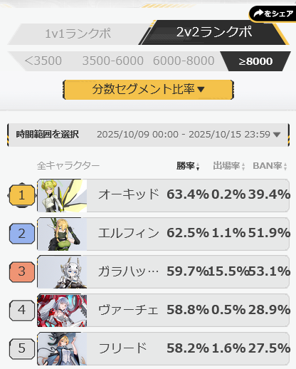 マッチ/ランクで結構な頻度で白ガラハッドに当たって、ぼこぼこにされて「こいつ強くない?」って思ってたのですが、ブラホ帯での勝率が59.7%と高めでした